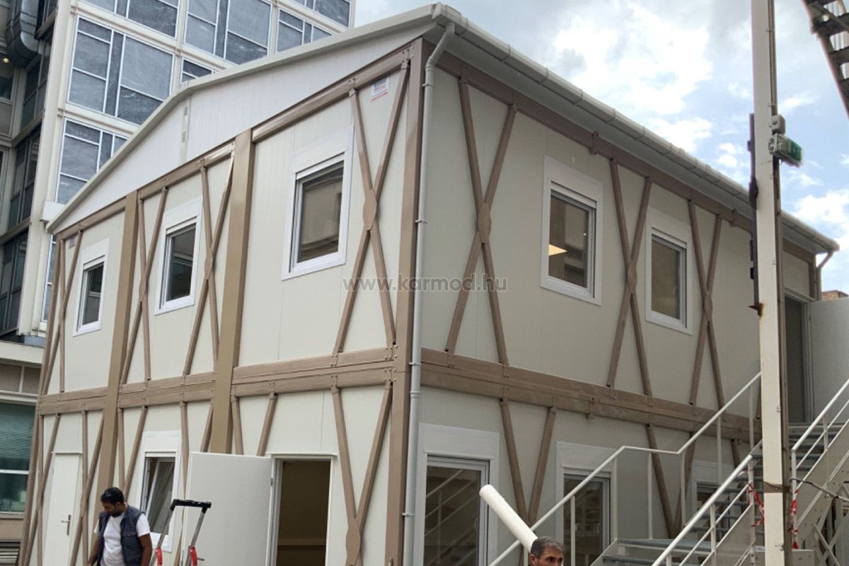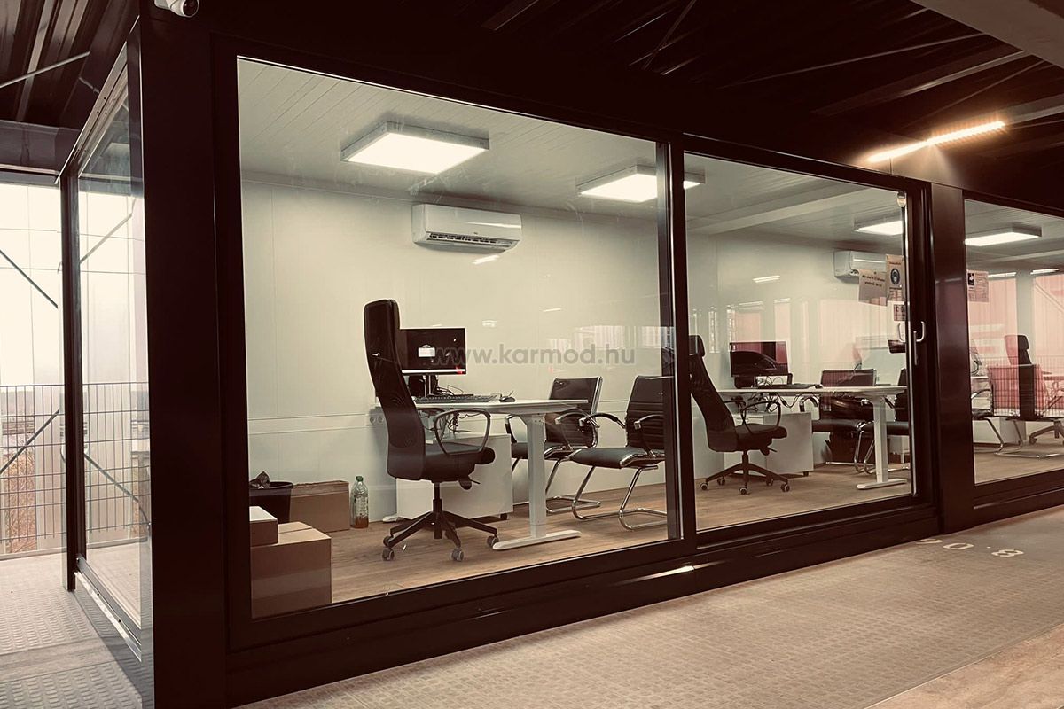A mai munkakörnyezetben az irodai helyek mobilitása elengedhetetlen. A Karmod szendvicspanel irodái a Konténerház technológiájával készülnek, ami gyors és egyszerű telepítést tesz lehetővé. Kiválóan alkalmasak ideiglenes projektekhez, építési helyszínekhez vagy távoli munkaterületekhez.